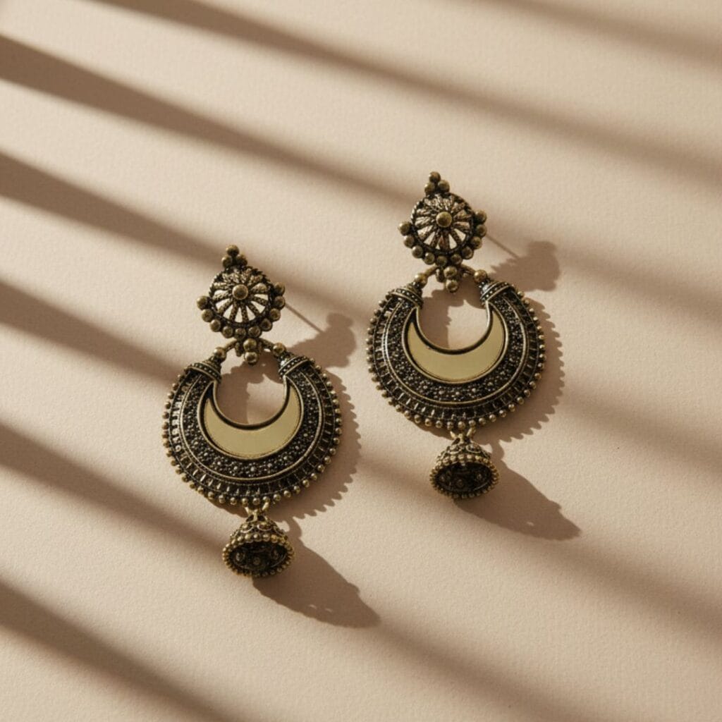 The Gold Half Moon Jhumkas are ideal for women who love elegant traditional jewelry without the heaviness of real gold. Their design reflects classic Indian craftsmanship with a touch of contemporary style, making them one of the most loved artificial jhumkas from 99earrings.