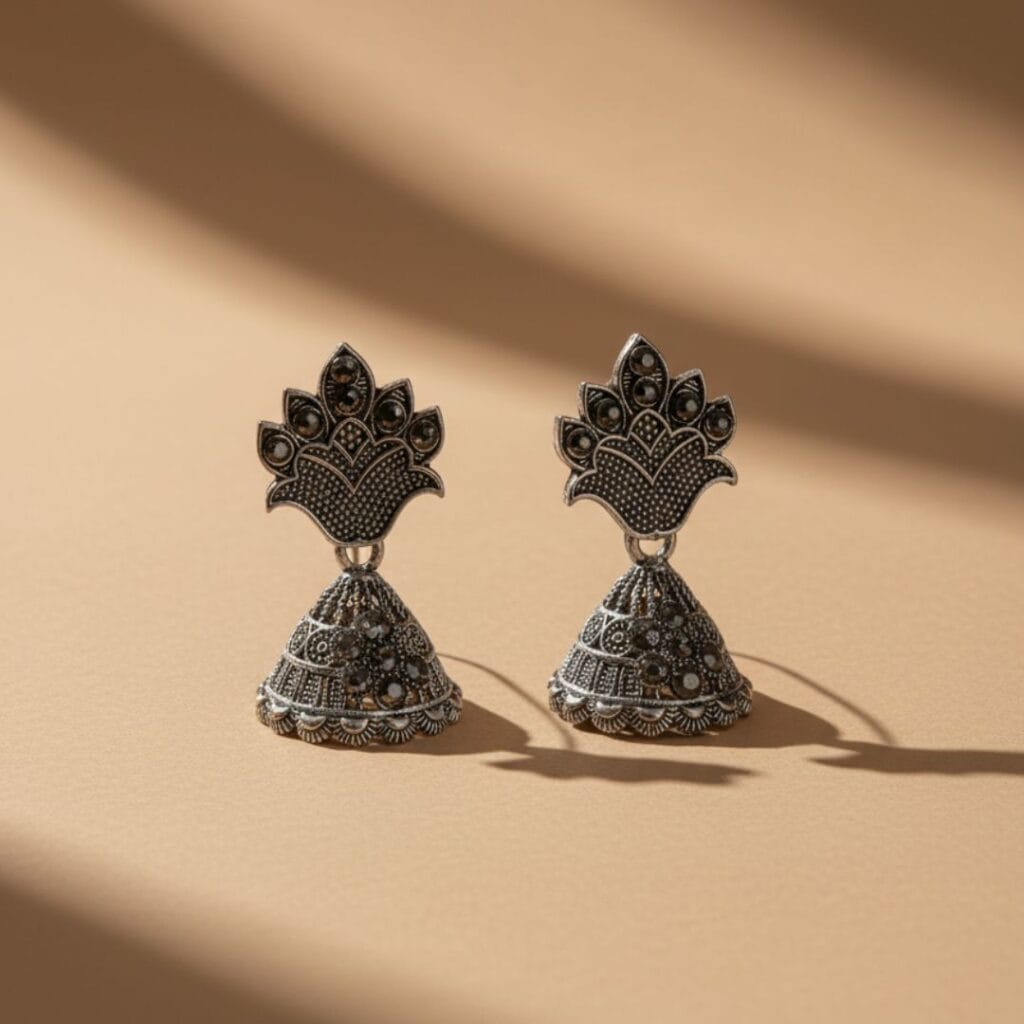 Oxidized Silver Jhumkas | Stylish Jhumka Earrings