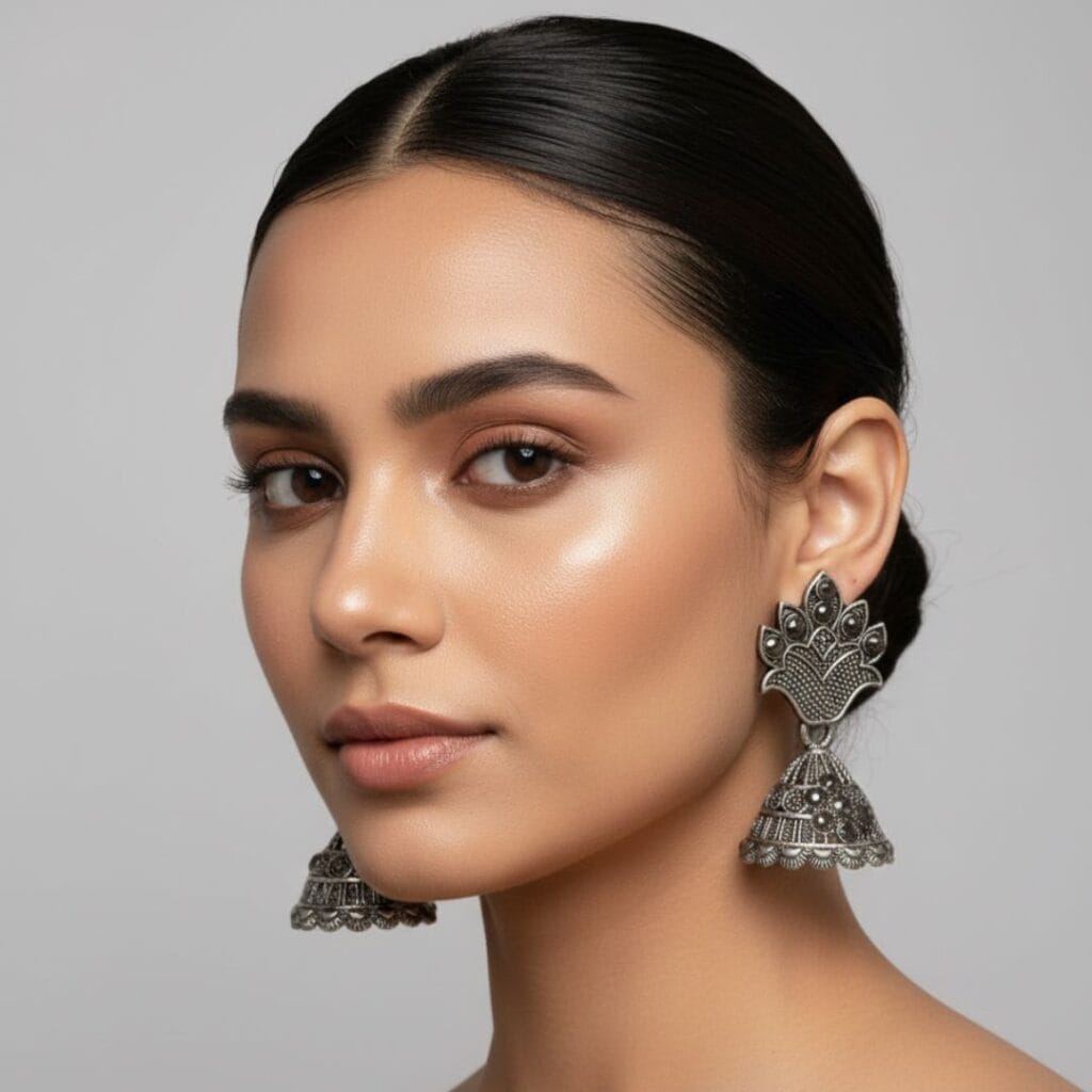 At 99earrings, we celebrate craftsmanship through designs that speak of culture & fashion. The Oxidized Silver Jhumkas are part of our exclusive collection of stylish jhumka earrings that combine traditional artistry with contemporary elegance. Each piece is made to complement every woman’s style and confidence.