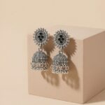 Enhance your ethnic style with our Black Stone Oxidised Silver Jhumka Earrings, designed for women who love timeless tradition with a bold, elegant touch. These beautifully crafted oxidised silver jhumka earrings feature an intricately detailed stud adorned with black stone accents, adding depth and contrast to the classic silver finish.