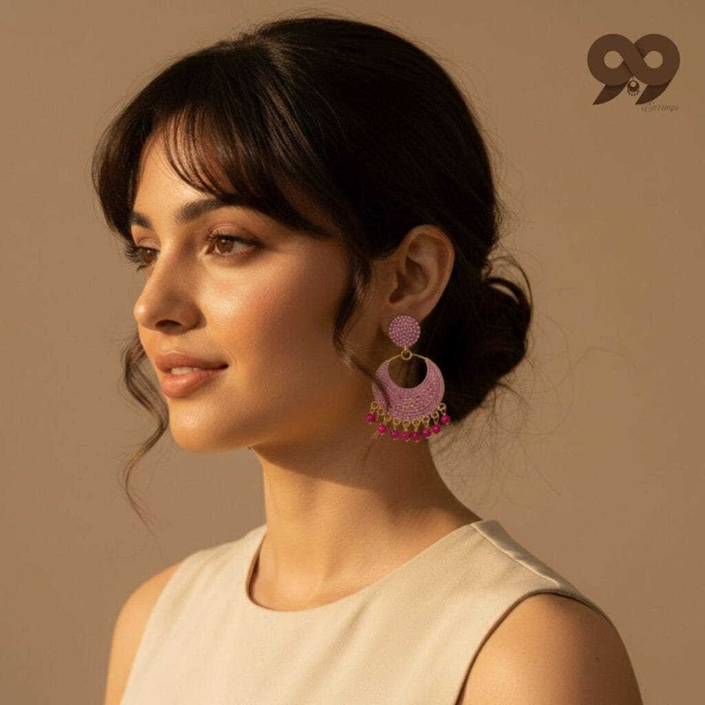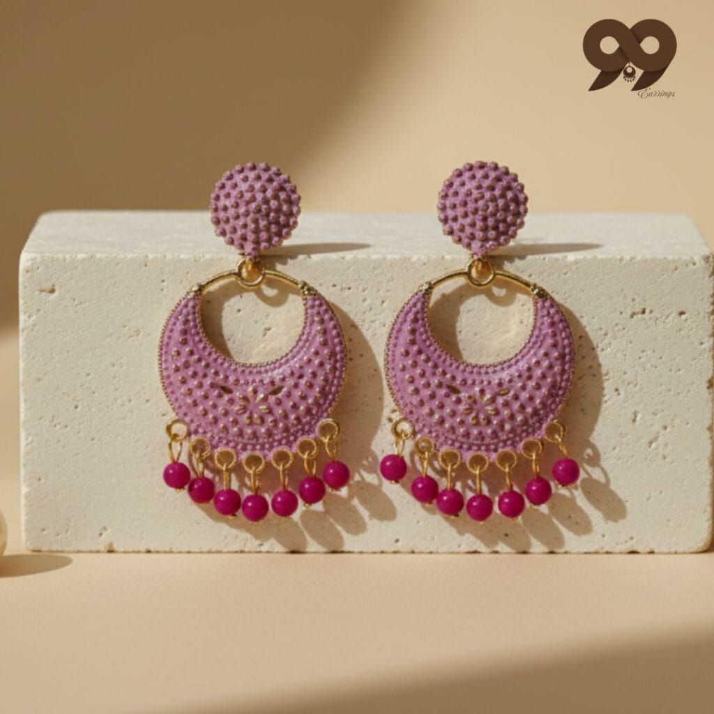 We are currently hosting an exclusive seasonal sale, making these designer-inspired pink earrings for women available as a premium earring under 100rupee for a limited time. This is a rare opportunity to own high-end matte finish jewelry that looks like a custom boutique piece at an unbeatable price point. These pink earrings for women are exceptionally versatile, pairing beautifully with floral organza sarees, white chikankari kurtis, or even trendy Indo-western fusion wear. The combination of the soft rose-pink hue and shimmering magenta beads ensures these pink earrings for women capture the light and attention from every angle.