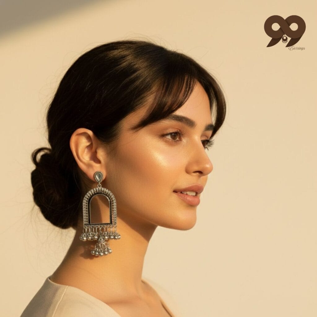 We are currently hosting an exclusive seasonal sale, making these designer-inspired Kashmiri earrings available as a premium earring under 100rupee for a limited time. This is an unmatched opportunity to own high-end oxidized silver jewelry that looks like a priceless family heirloom at an unbeatable price point. These Kashmiri earrings are exceptionally versatile, pairing beautifully with heavy pichoras, traditional pashmina shawls, or even trendy Indo-western fusion wear. The rhythmic chime of the silver beads ensures these Kashmiri earrings add a captivating charm to your every step.
